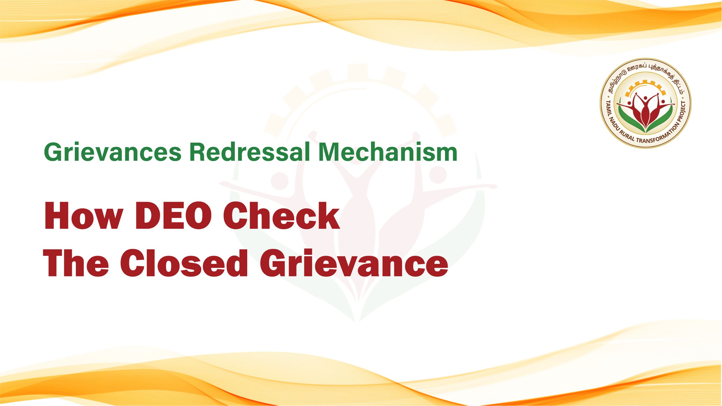 Once the complainant is satisfied on the resolution provided by the District Executive Officer, the grievance will be moved to the closed status. The District Officer can see the closed grievances in the 'Closed Grievances' tab How DEO Check the Closed Grievance Once the complainant is satisfied on the resolution provided by the District Executive Officer, the grievance will be moved to the closed status. The District Officer can see the closed grievances in the 'Closed Grievances' tab