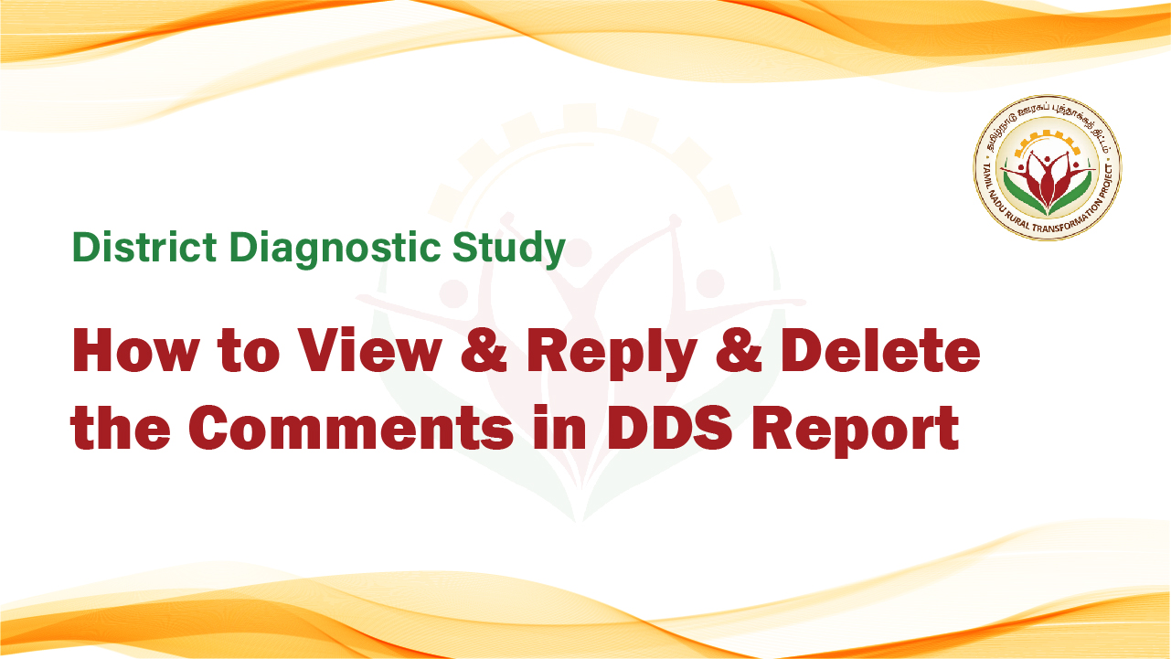 In this video, you will learn how to View the comments, Reply for the comments and Delete the comments given by DEO in DDS How to View, Reply and Delete the Comments in DDS Report In this video, you will learn how to View the comments, Reply for the comments and Delete the comments given by DEO in DDS