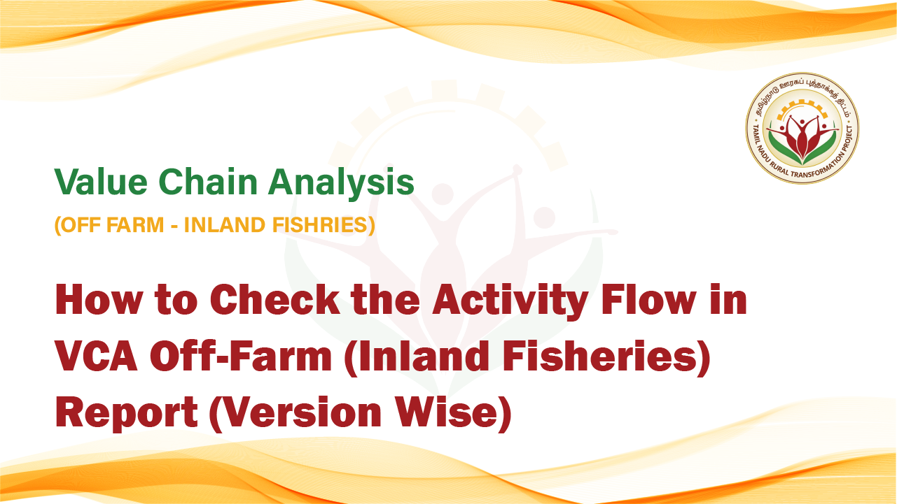 This video will explain how to navigate to the Activity section to view the staff user activities, Comments and the Version updates How to Check the Activity Flow in VCA OFF-Farm (Inland Fisheries) Report This video will explain how to navigate to the Activity section to view the staff user activities, Comments and the Version updates