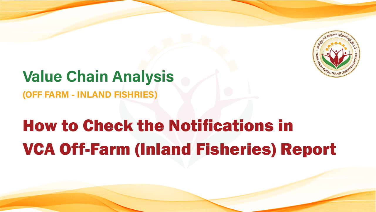 This video will guide you how to view the notifications How to Check the Notifications in VCA OFF-Farm (Inland Fisheries) Report This video will guide you how to view the notifications