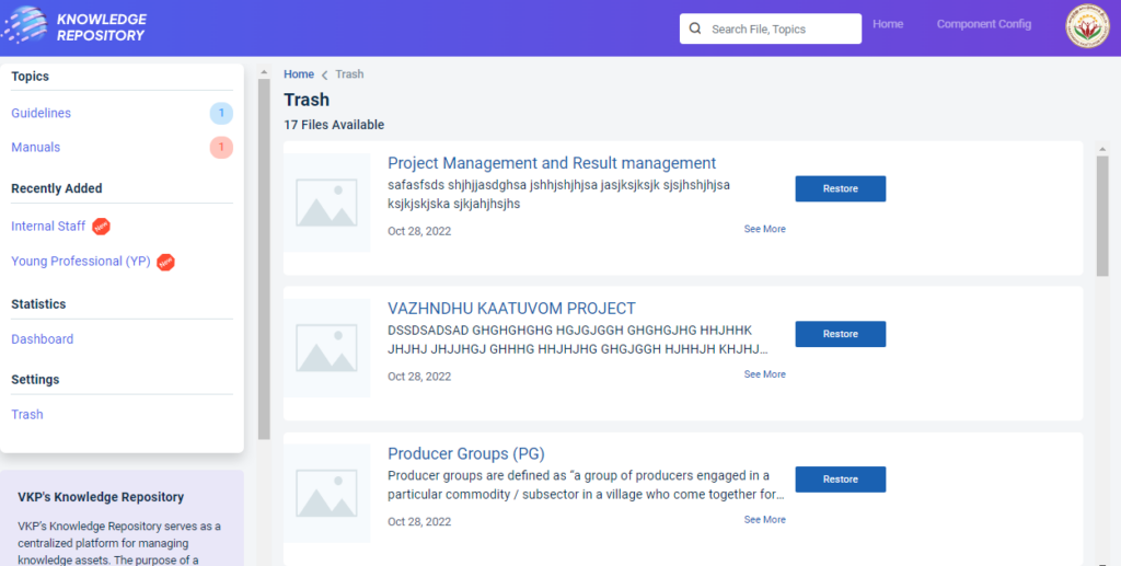 Step 3 : After selecting the Knowledge Management Repository, the user will be redirected to the respective home page
