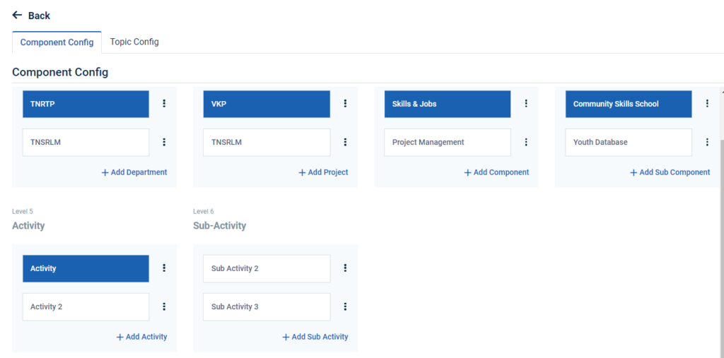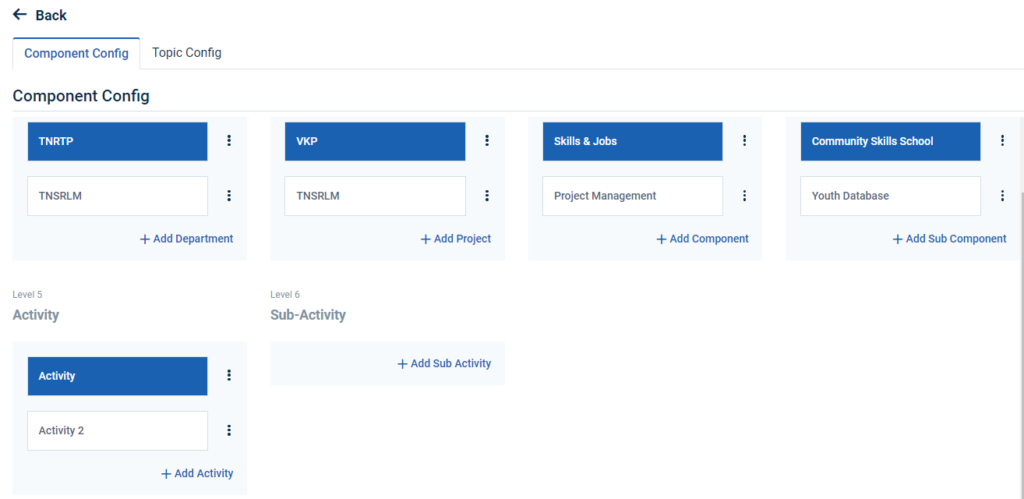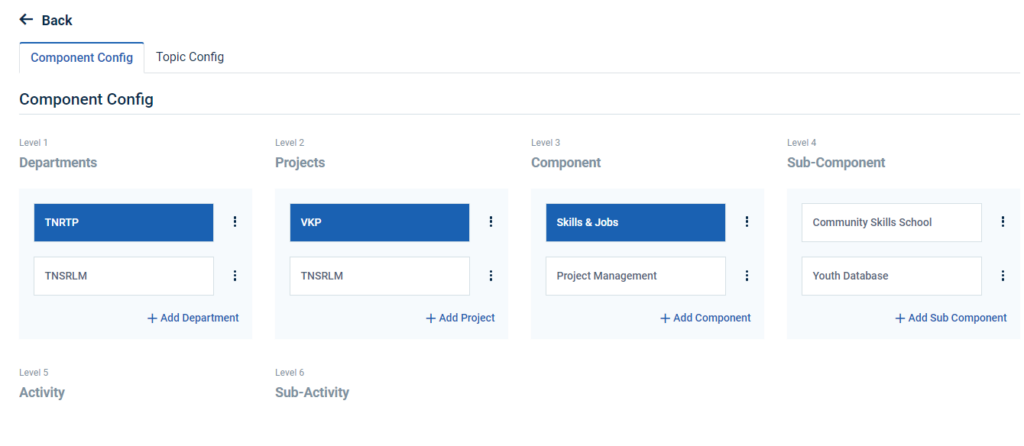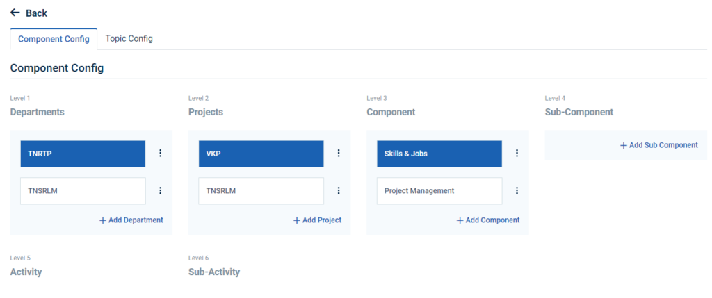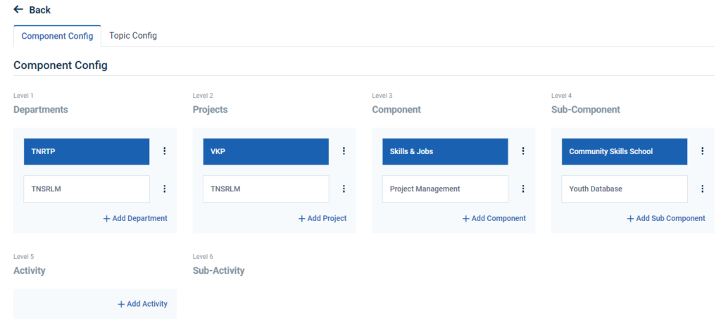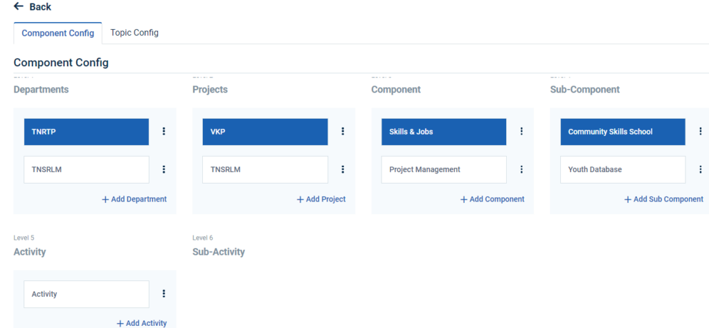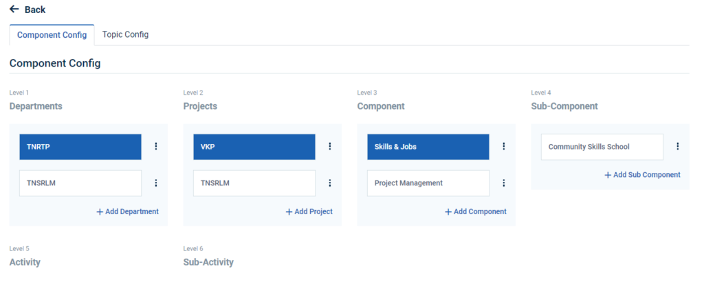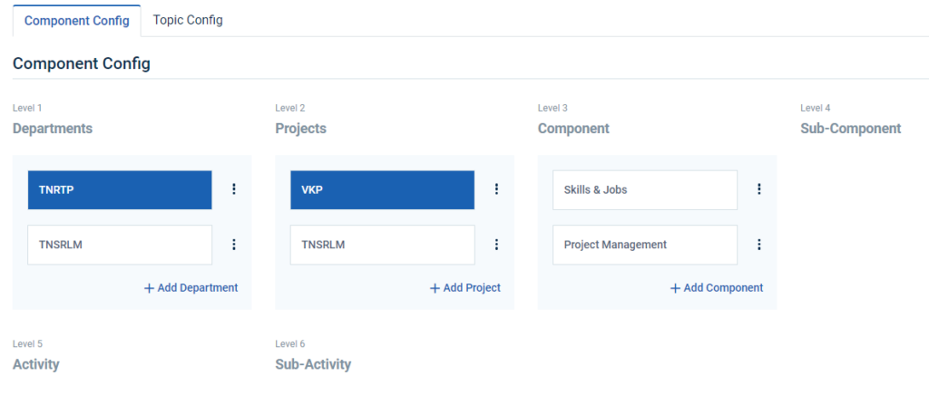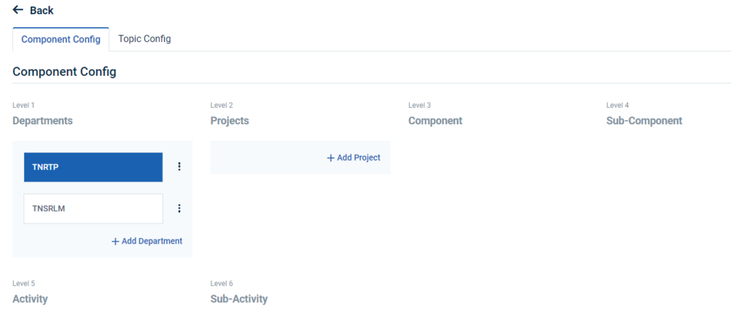 Step 5 : Click ‘Component Config’ to create the new department and it will get Component Config page