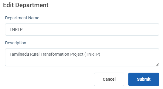 Step 6 : To edit the department details click ‘Edit’ and the edit department popup will appear
