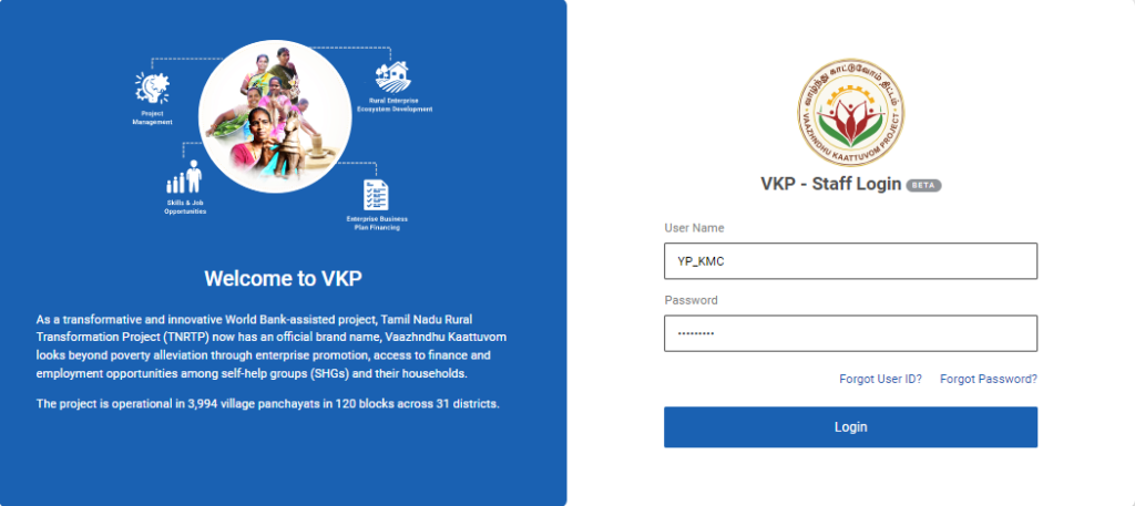 Step 1 :Log in with the YP KMR’s username and password and click ‘Login’