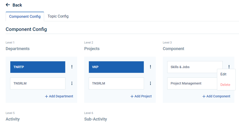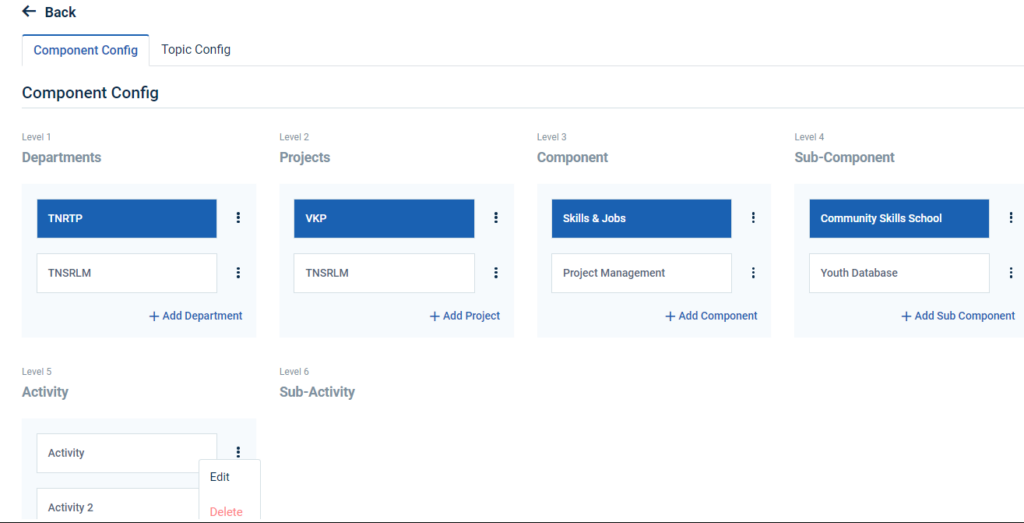3.How to Edit & Delete the Level1 Component Configuration (Department):