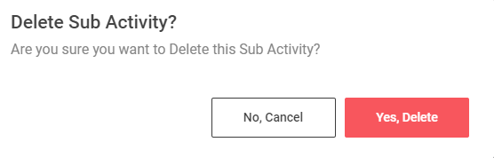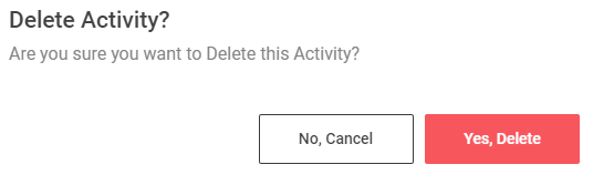 Step 8 : To delete the activity click ‘Delete’ and the delete activity popup will appear click ‘Yes Delete’ to delete the activity