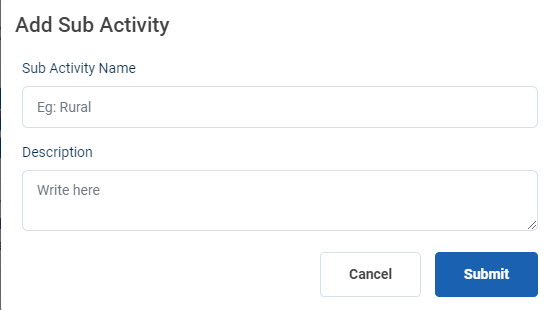 Step 10 : Click ‘Submit’ to add the sub activity detail