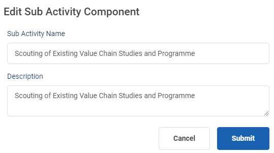 Step 6 : To edit the sub activity details click ‘Edit’ and the edit component popup will appear
