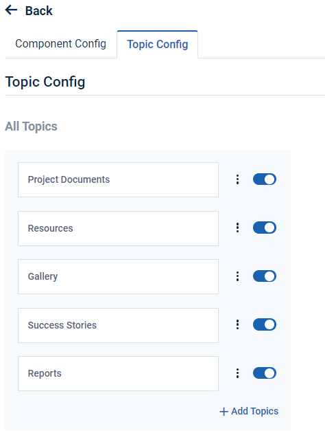 Step 6 : Click ‘Topic Config’ to create the new topics and it will get Component Config page