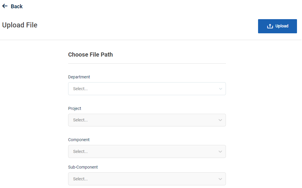 Step 6 : Choose File Path :  Click the dropdown to choose the file path Department, Project, Component and subcomponent,activity & Subactivity details