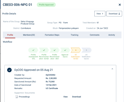 Step 7 : Once the profile has approved by DYCOO, the DYCOO can view the profile details and updated workflow tracker