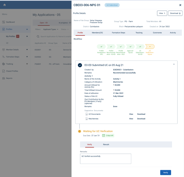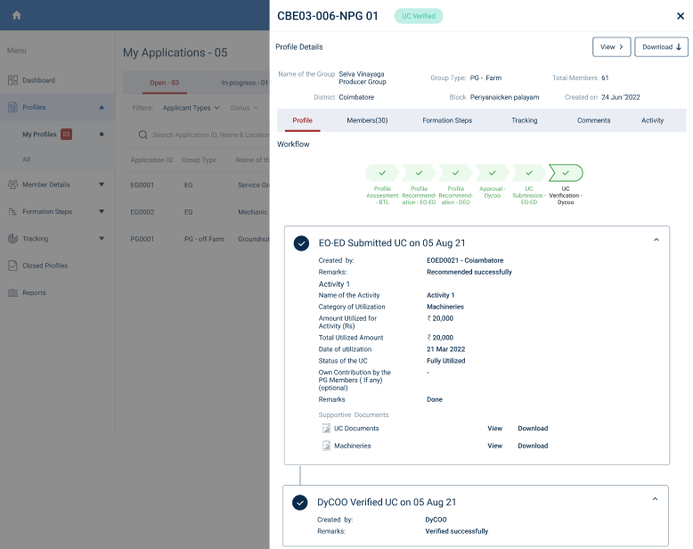 Step 7 : Once the DYCOO clicks the UC submitted profile select the profile, to view the profile details more.